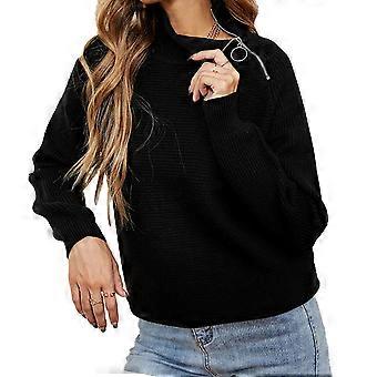 نساء عالية الرقبة سحاب سترة الياقة المدورة طويلة الأكمام كنزة صوفية عارضة فضفاضة بلوزات متماسكة أعلى أسود XL