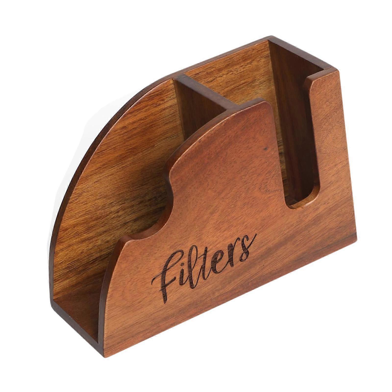 Wood Coffee Filter Holder Modern Stand Box for Countertop Round Filters Cafe