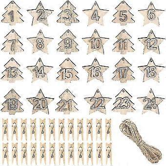 Wooden Advent Calendar with 24 Clips, Christmas Countdown Calendar Decorations & Tree Ornaments