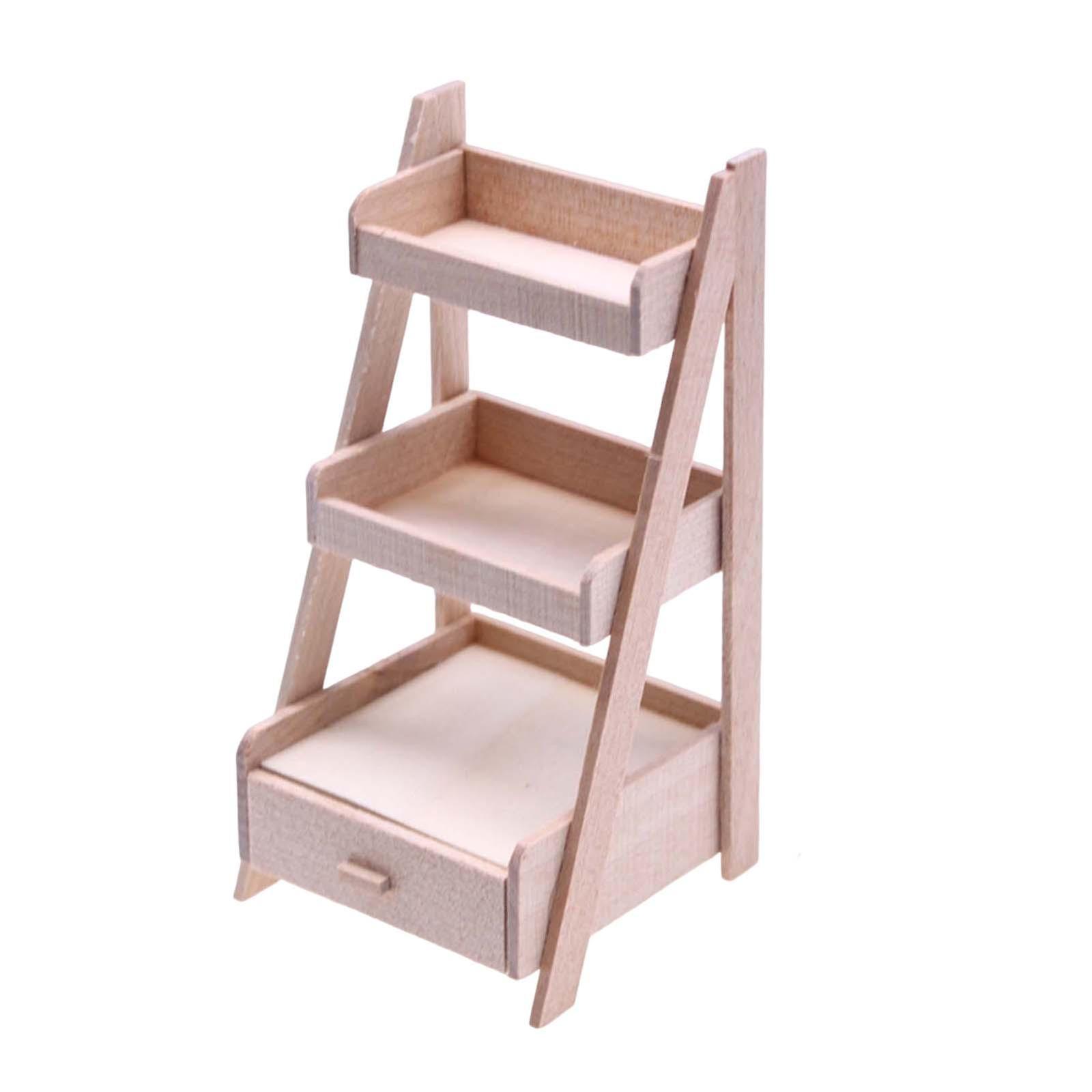 Wooden Dollhouse Shelf with Drawer 1:12 Scale Bookshelf for Doll House