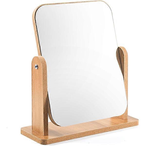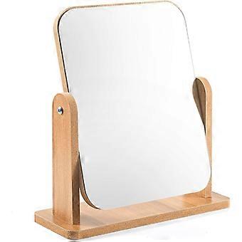 Wooden Makeup Table Mirror, 360° Rotating Desktop Mirror