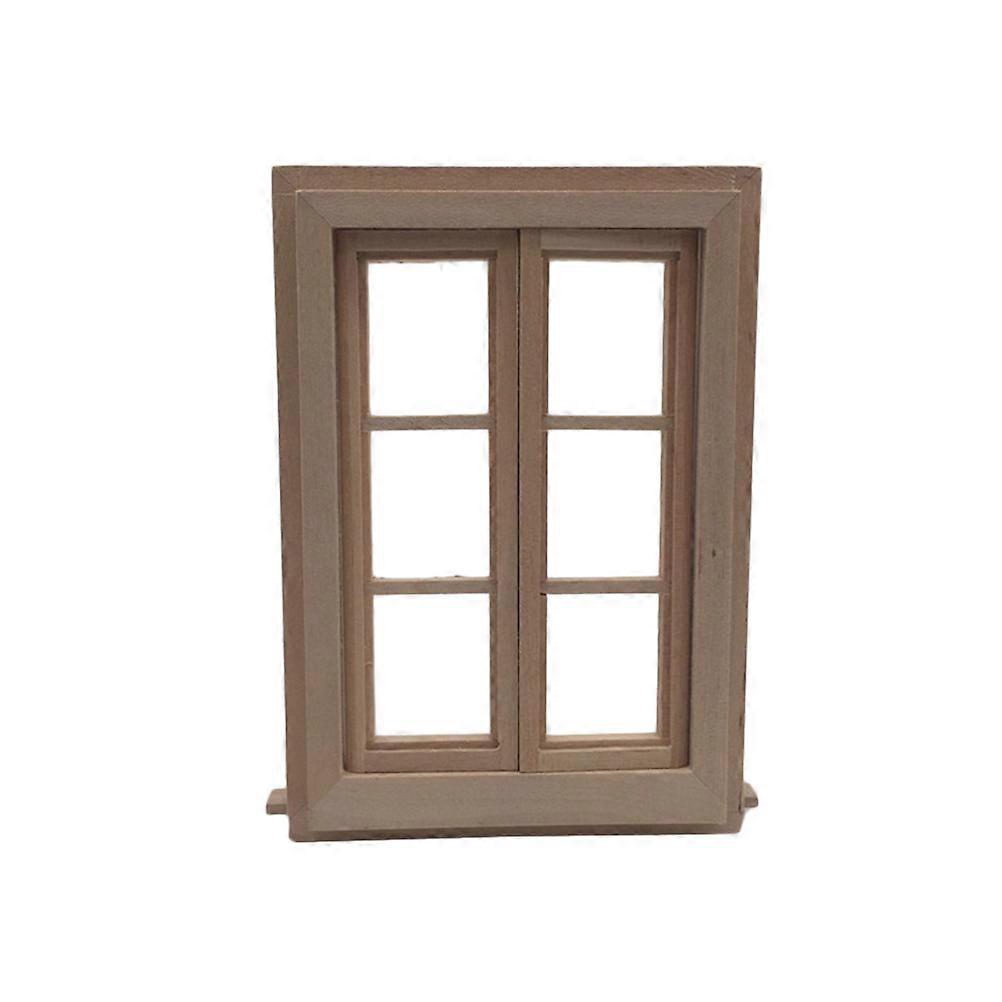 Wooden Mini Window Model Rectangular Double Open Window for Decoration 1Pcs
