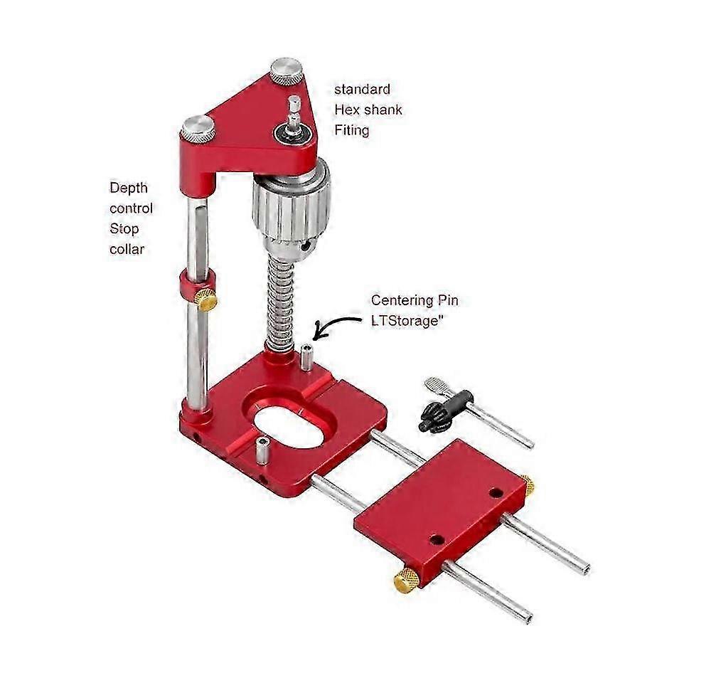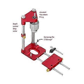 Woodworking Locator and Drill Positioner Tool, featuring a Red Aluminum Alloy Base for Precision Work.