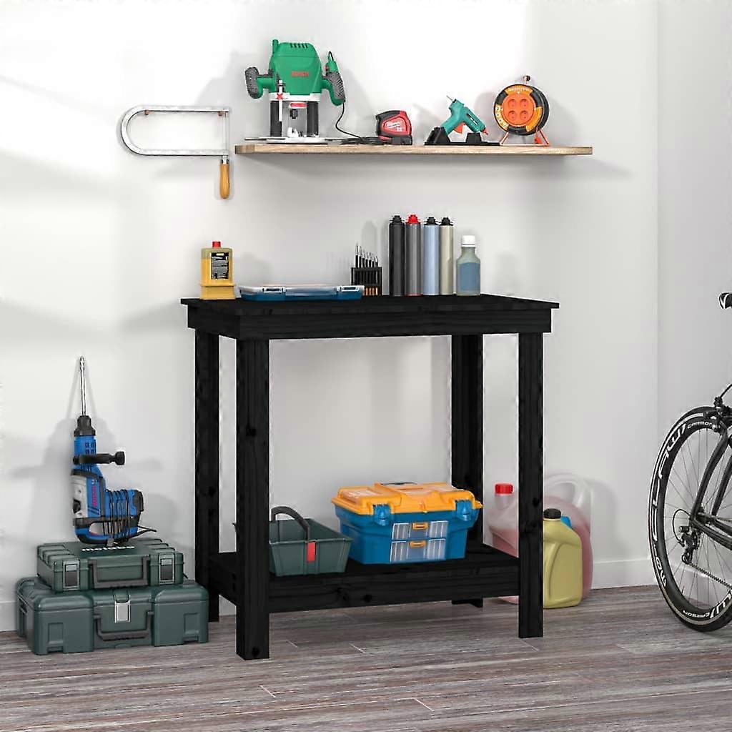 Werkbank Schwarz 80x50x80 cm Massivholz Kiefer