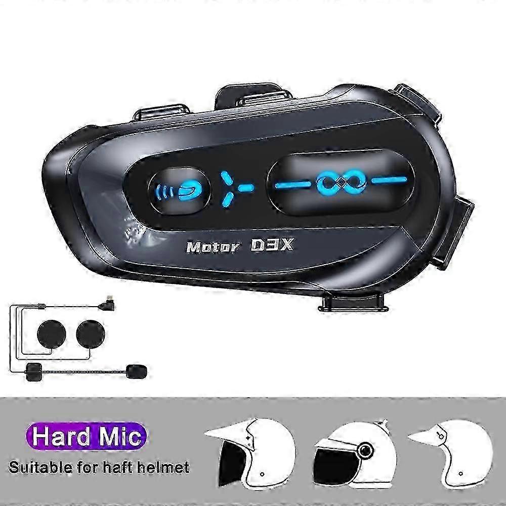 Product Specifications: Special Features: 600M Interphone For More than 6 Riders or Music Sharing Applicable Helmet Type: Half Helmet,MODULAR,MOTOCROSS,Open face,Full Face,Flip Up Helmet,Universal Number of speakers: Half-duplex communication with countless people Bluetooth connection: music sharing, Bluetooth music Charging time: 2.5 hours Battery life: 24 hours Waterproof: IP56 dustproof and waterproof Speaker research and development: titanium alloy speakers, high and low frequencies, high standards Bluetooth technology: 5.4 (faster transmission speed) Voice assistant: Ai wakes up voice with one click Half-duplex intercom: Connection conditions: the machines need the same model to be paired, unlimited number of people within the effective distance. Connection: After the two machines are turned on, press the mode key to switch to half-duplex speech mode, when one of them needs to speak, press and hold the speech key without letting go, it can speak, let go and exit when the other one needs to speak, the same operation can realize half-duplex speech. When the other one needs to talk, the same operation can realize half-duplex talk. When half-duplex talk: only one unit can be allowed to enter the talk state, the other one can't be in the talk state. Music Sharing Pairing After both devices are turned on, press the Mode button briefly. Switch to music sharing mode, in music sharing mode, double press the mode button. Switch between music sharing transmitter and music sharing receiver mode. Description: 1. 5.4 Bluetooth chip system with smooth and powerful performance. 2. Single channel intercom effective distance unlimited number of people: -Newly developed half-duplex intercom function realizing talking in unlimited number of D3X Headset within 600m effective distance, more effective communication. 3. Music Sharing Multiple people listening to the same song: -Support music sharing function, support one D3X Headset in the 10m effective distance to share to more than one D3X Helmets, listen to the same song, together to get high! 4. IPS6 dustproof, waterproof, and rain resistant, fearless of dust and sand. 5. Wake up the Al voice assistant with one click. 6. Long-lasting battery life for a full day of riding pleasure: -1000mAH high-capacity battery, charging time:2.5 hours,strictly selected high-voltage chip lasting 22 hours or so, fast charging riding all day long, 7. Long lasting endurance, large capacity battery, long listening time, long riding distance. 8. Automatic answering of incoming calls is safer and more convenient. 9. Intelligent noise reduction and filtering to enjoy pure sound quality. 10. Support one to two connection for two phones at the same timeMultiple international professional testing and certification. Package includes: 1 or 2x Earphone 1 or 2x Base 1 or 2x Integrated Full or Half helmet microphone 1 or 2x Charging cable 1 or 2x Six-language manual 1 or 2x Installation package Note: Due to the light and screen setting difference, the item's color may be slightly different from the pictures. Please allow slight dimension difference due to different manual measurement.