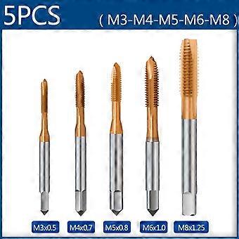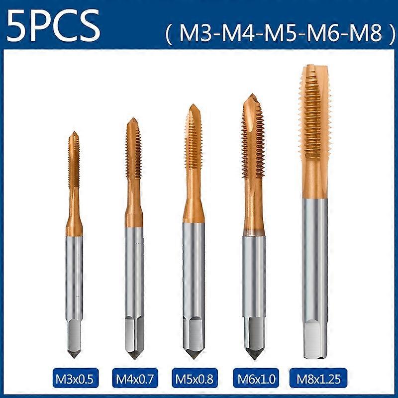 XCAN Metric tap Set 5pcs M3 M4 M5 M6 M8 HSS Screw Tap Drill Bit Straight Flute Machine Thread Tap Dr
