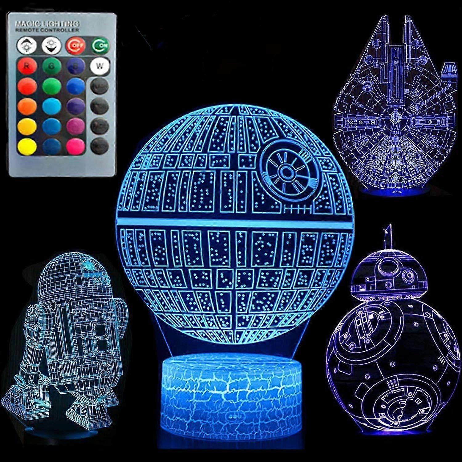 XYC 3D Illusion Star Wars Night Light Four Pattern Death Star/Millennium Falcon/R2 D2/BB-8 Interstellar 7 Color Change Decor Lamp Desk Night Light Lam