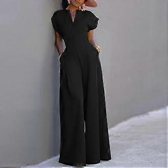 ZANZEA Women Elegant Long Jumpsuit Wide Leg Casual Short Sleeve Pants