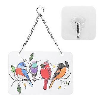 Monivärinen lintuaiheinen suorakulmion muotoinen PVC-metallieläinten ikkunakoriste ketjulla, 26–27 cm